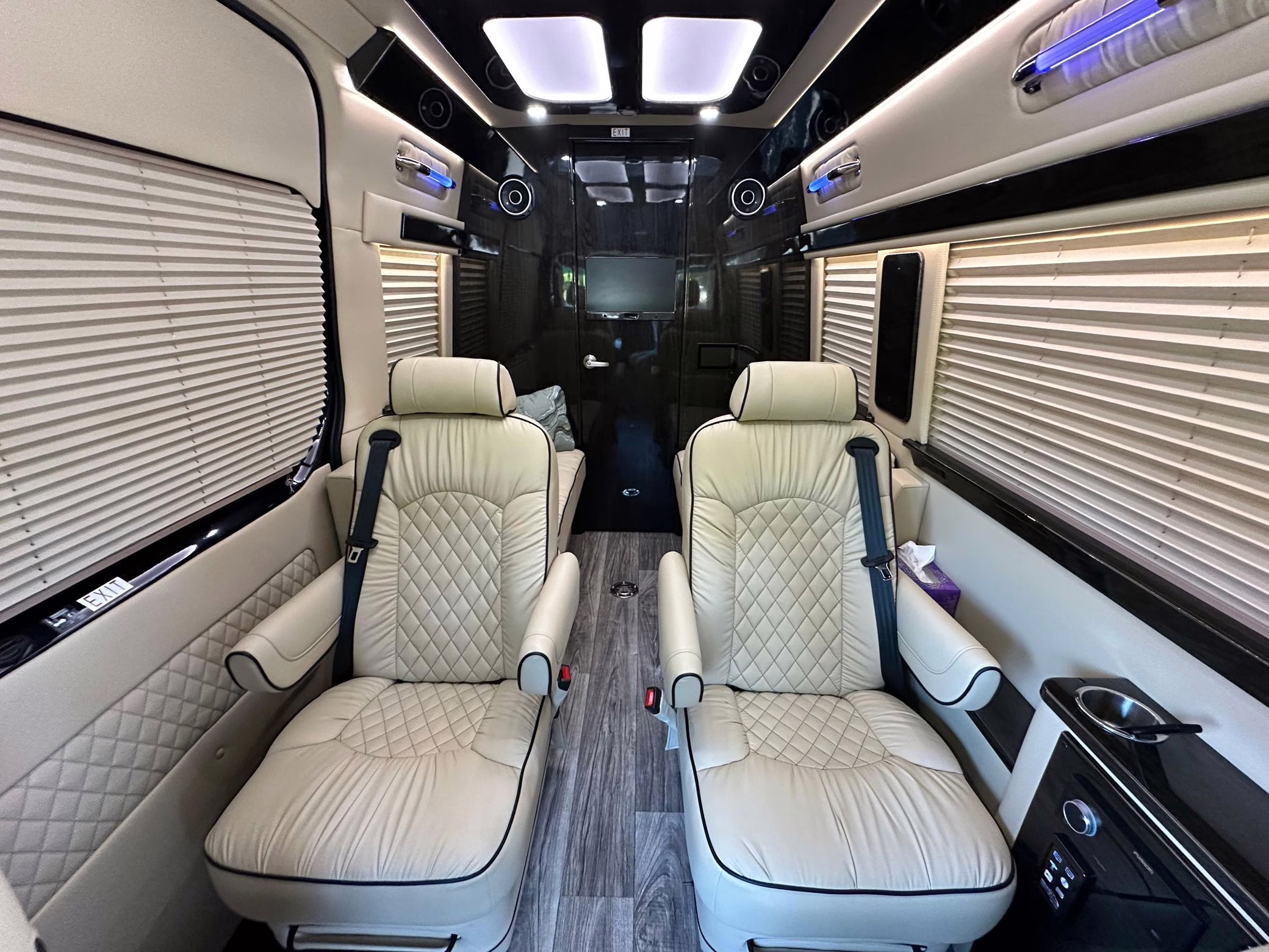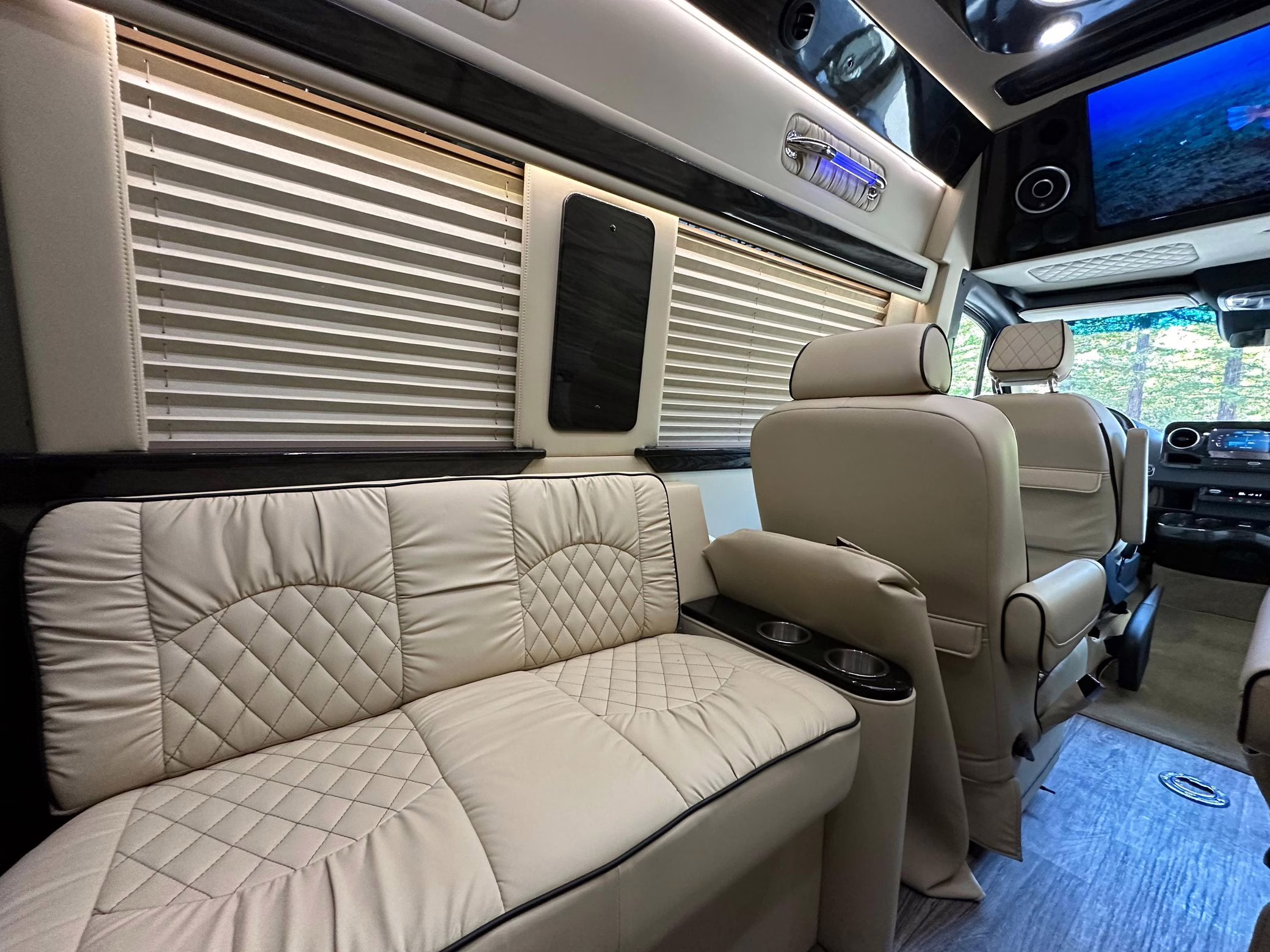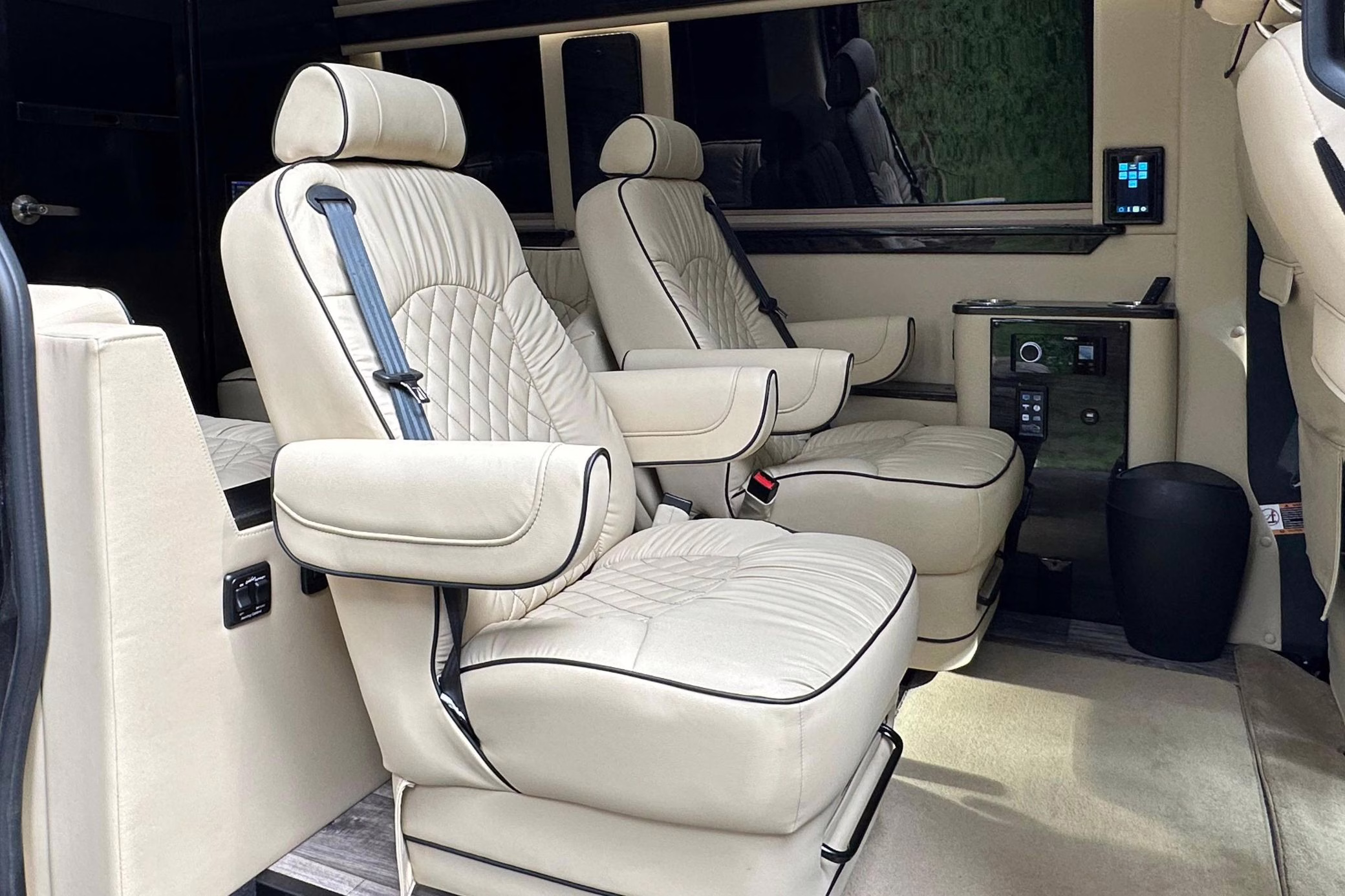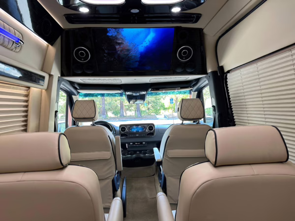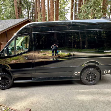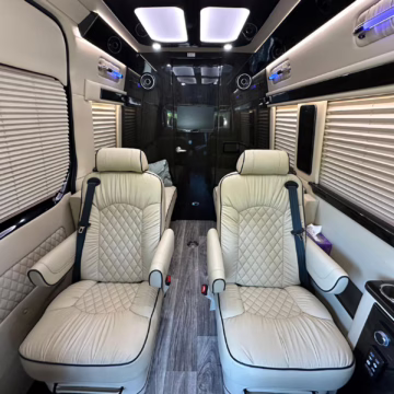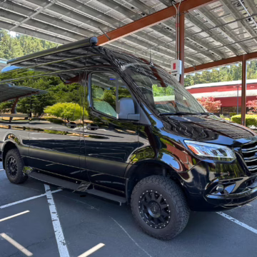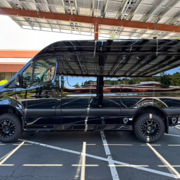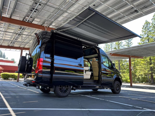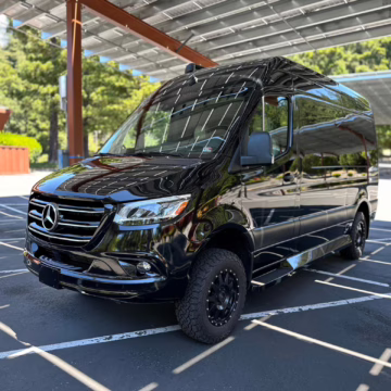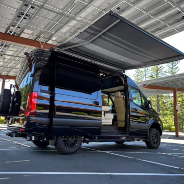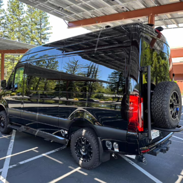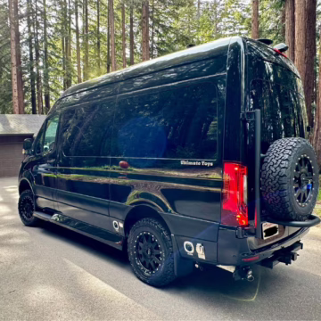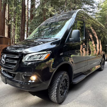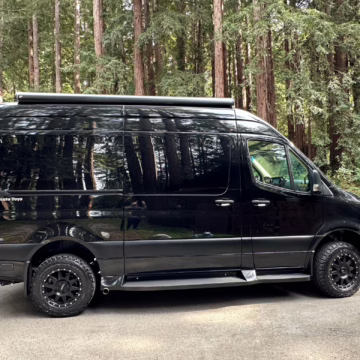 The Mercedes-Benz Sprinter has become an incredibly popular choice for camper conversions, thanks to its spacious interior, reliable turbodiesel power, and excellent driving dynamics. This particular Sprinter is a high roof model that touts 4-wheel drive – and it’s been converted into a luxury van by Midwest Automotive Designs. Features include 17-inch Method wheels, a roll-out awning with LED lighting, custom leather upholstery, middle-row captain’s chairs, dual sofas with fold-out beds, a kitchenette, and a toilet – so it has everything you need for a road trip!