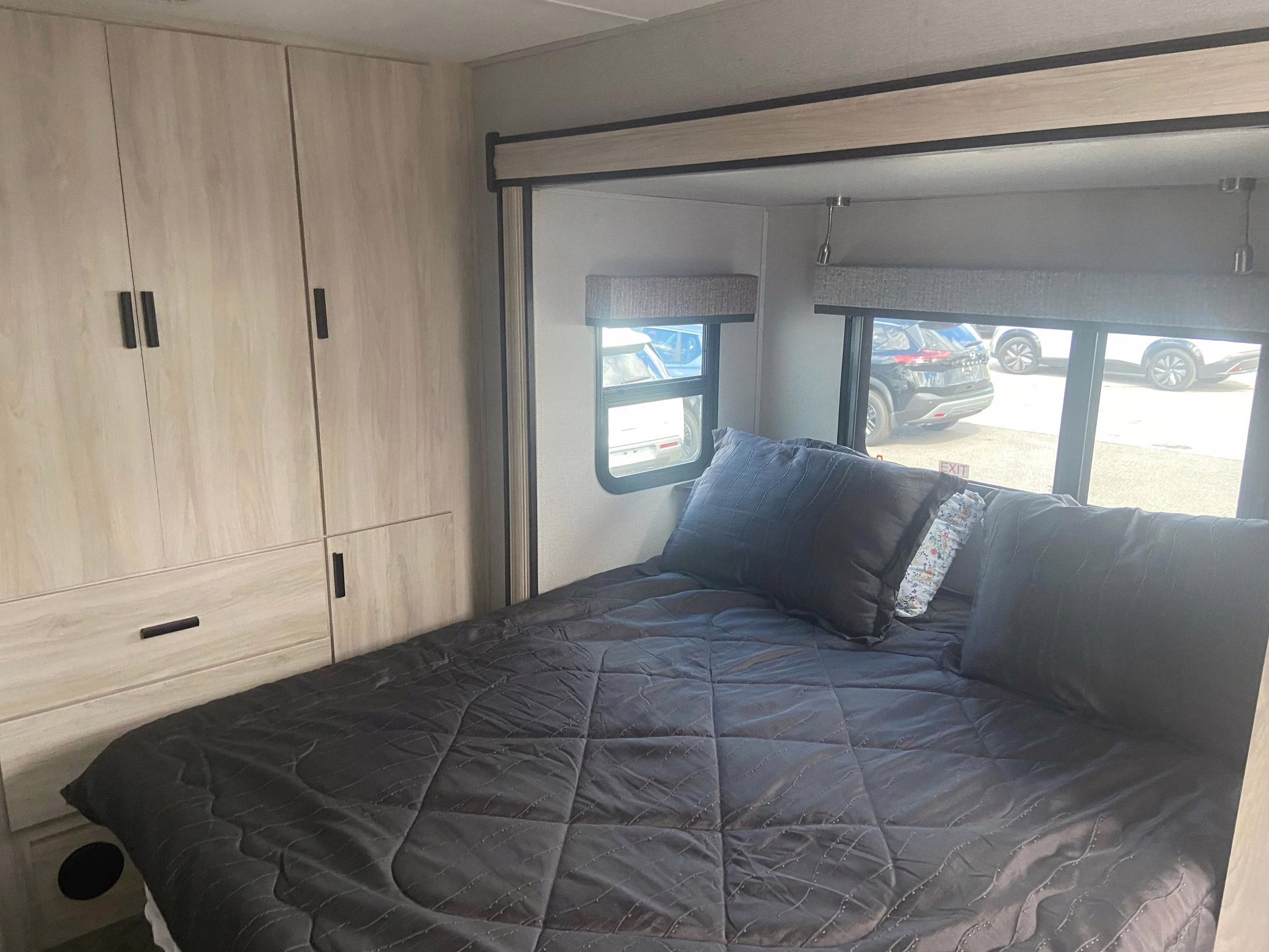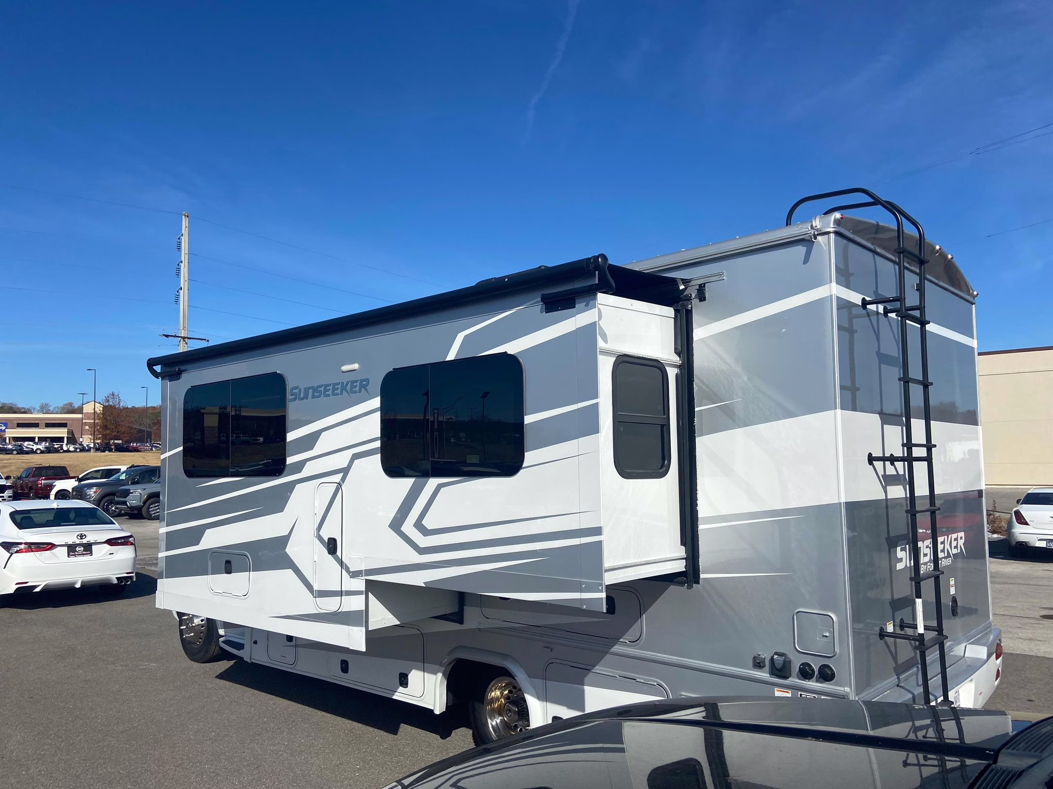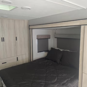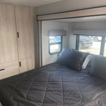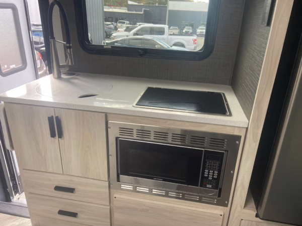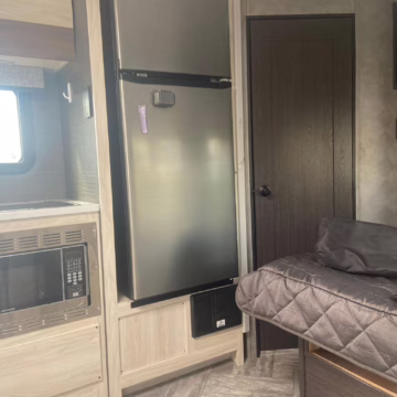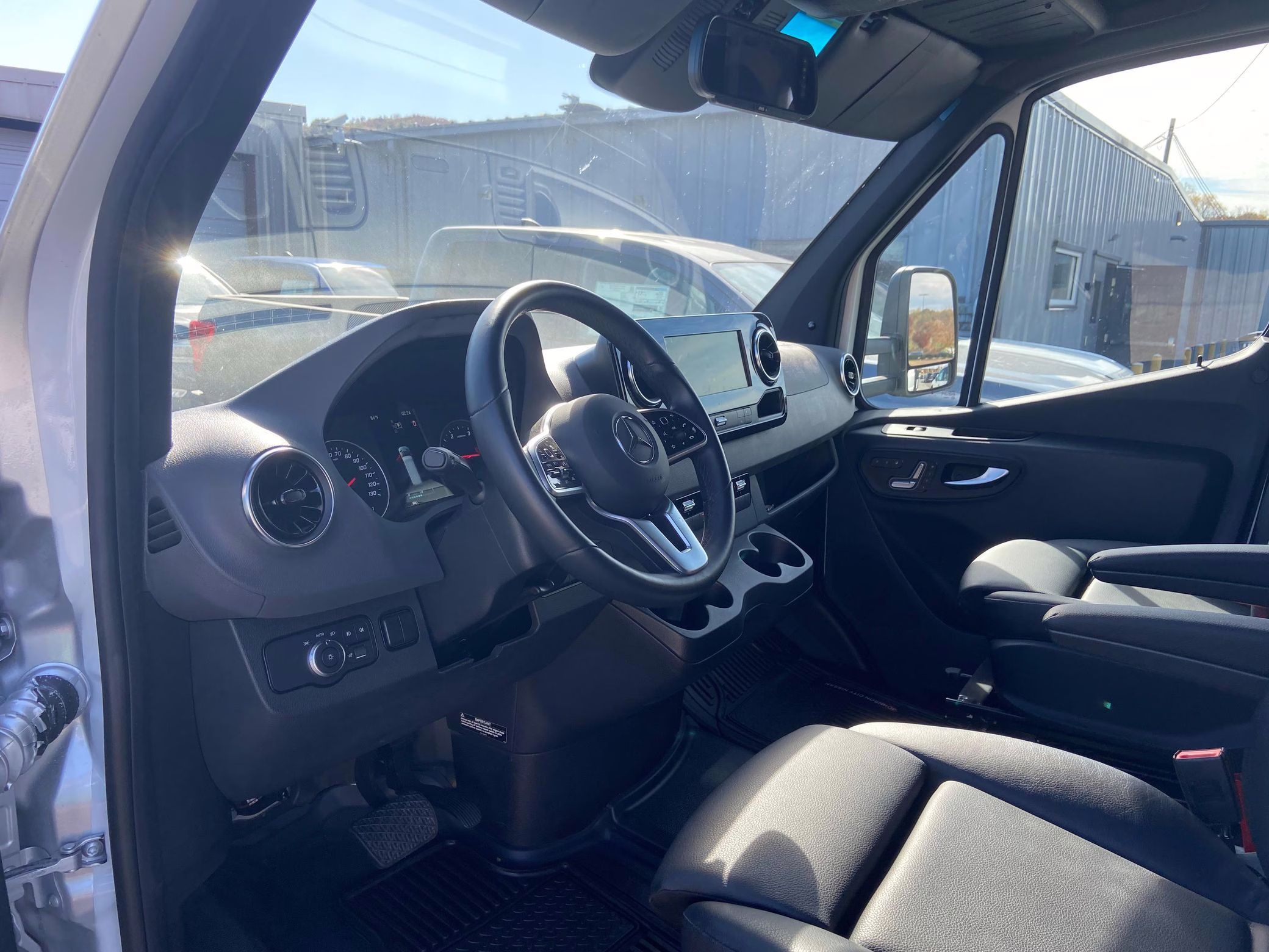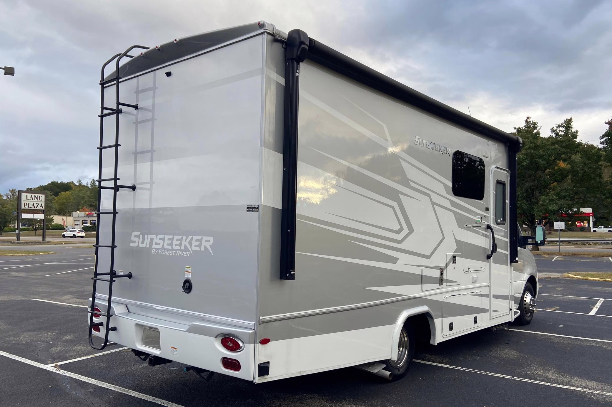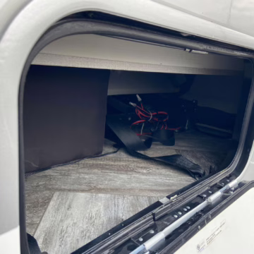 • Built on a 2020 chassis and registered as a 2021 model, this Sprinter was converted into a Class C camper by Indiana-based Forest River. The list of aftermarket parts added during the conversion includes an EQ Systems EQ Smart-Level leveling system, an awning, an external television, a rear-mounted ladder, side-facing reclining theater seats, a queen-size bed, a sink, a Dometic cooktop, a Greystone microwave, a refrigerator and freezer unit, a toilet, a shower, overhead storage compartments, fresh, gray, and black water tanks, a solar panel, and a Cummins Onan QG 3600 LP generator.