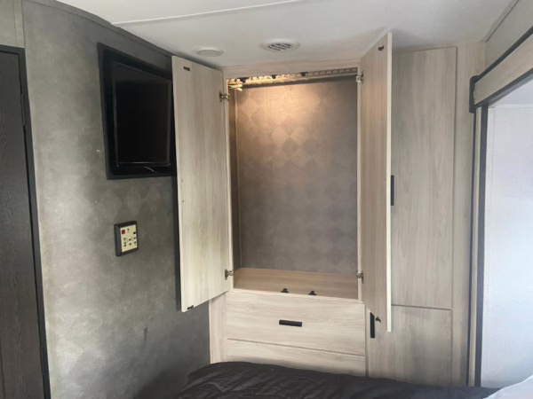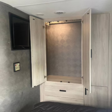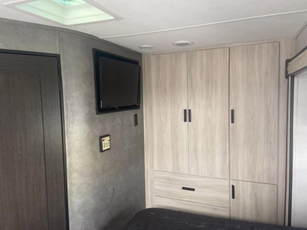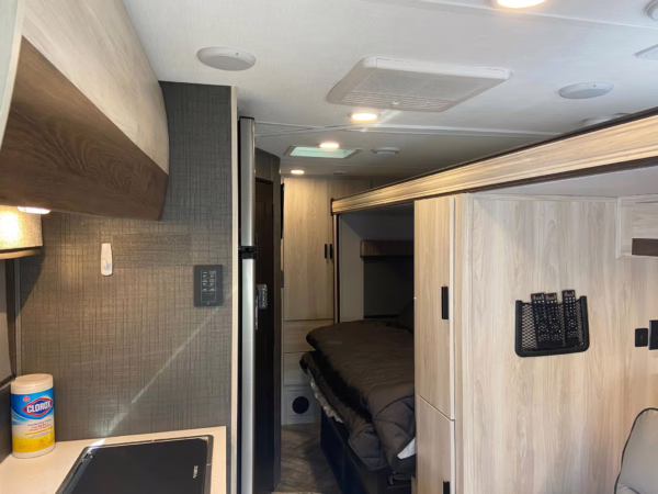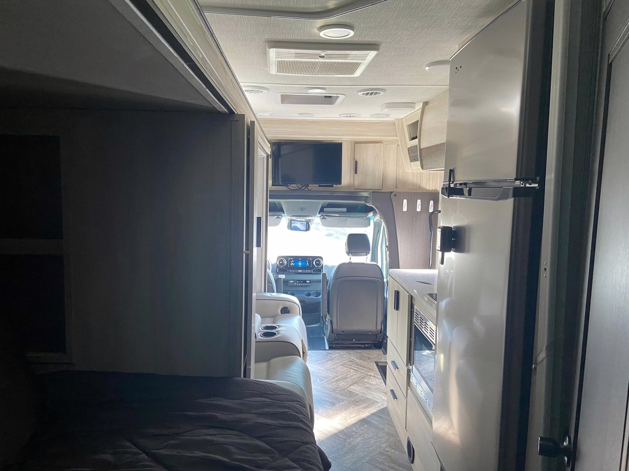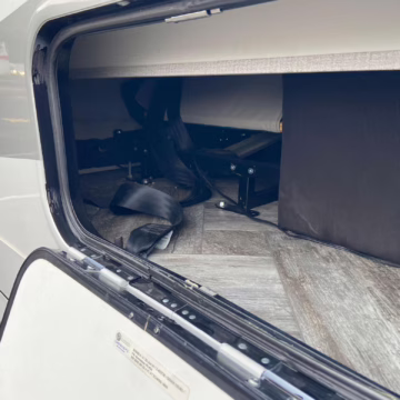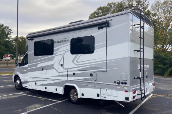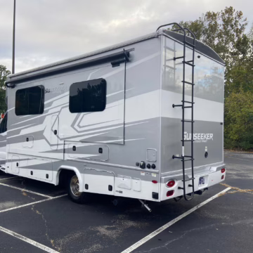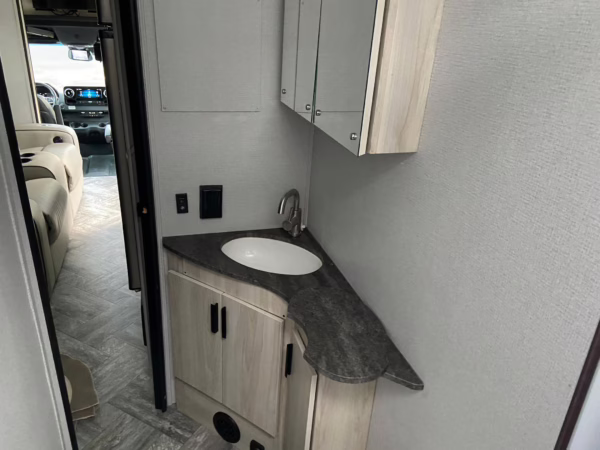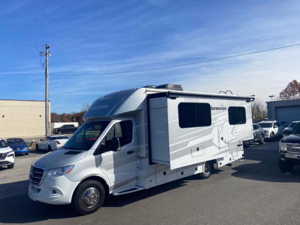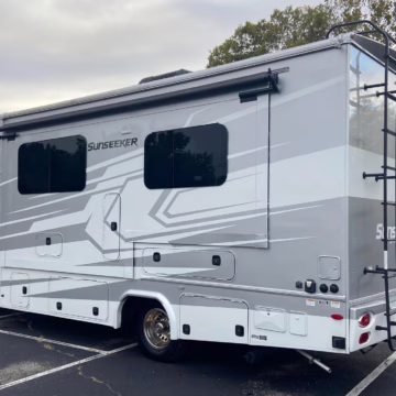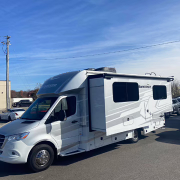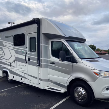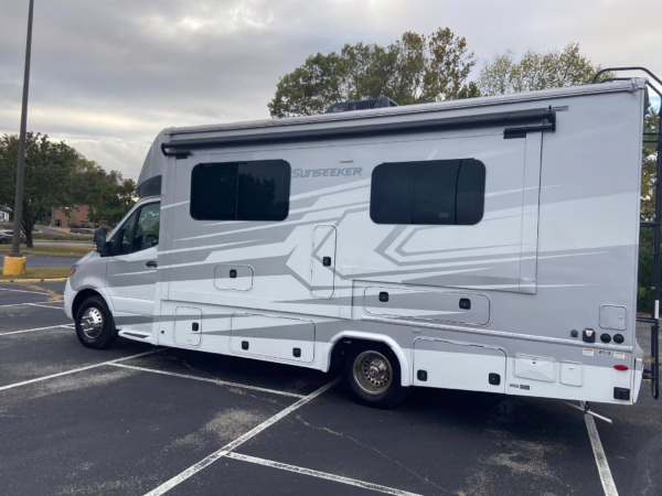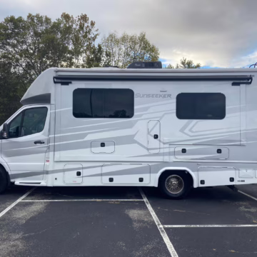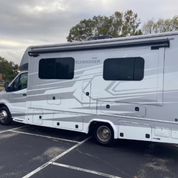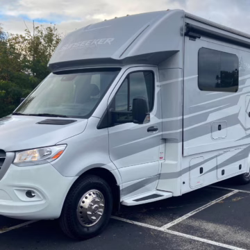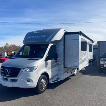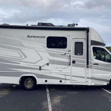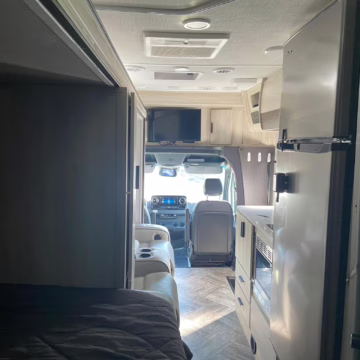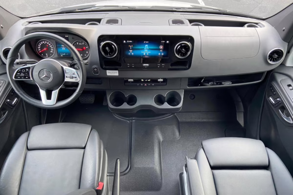 The Mercedes-Benz Sprinter is an excellent starting point for a motorhome conversion, and this one has everything you need to live on the road as you explore the country. It’s a Class C model with side-facing rear seats, a queen-size bed (!), a small kitchen, AND a bathroom – and you can travel without ever having to stop by a hotel. There are also many entertainment features, including three televisions – and driving aids like Crosswind Assist technology should make long drives more relaxing.
