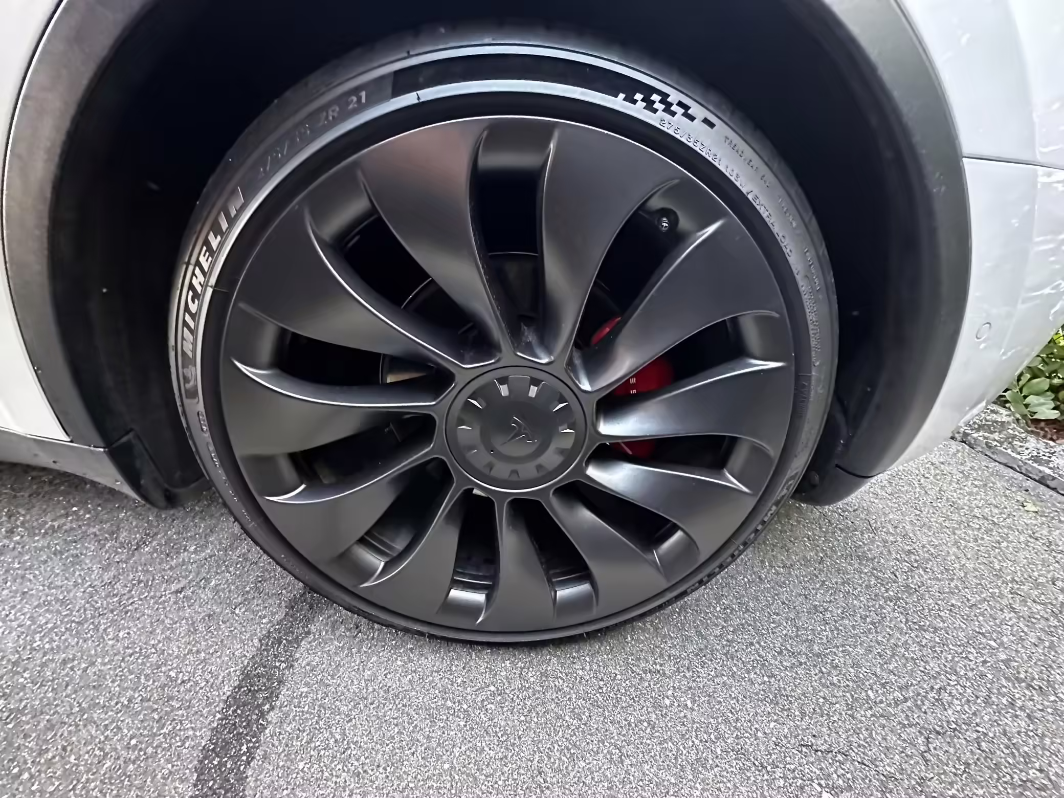 Factory equipment includes 21-inch “Überturbine” wheels, a Performance-specific braking system, a Performance-specific lowered suspension system, a panoramic glass roof, a 15-inch touchscreen for the infotainment system, a premium sound system, Autopilot technology, and the Full Self-Driving computer. The selling dealer reports that modifications are limited to tinted windows and the removal of the front and rear emblems.