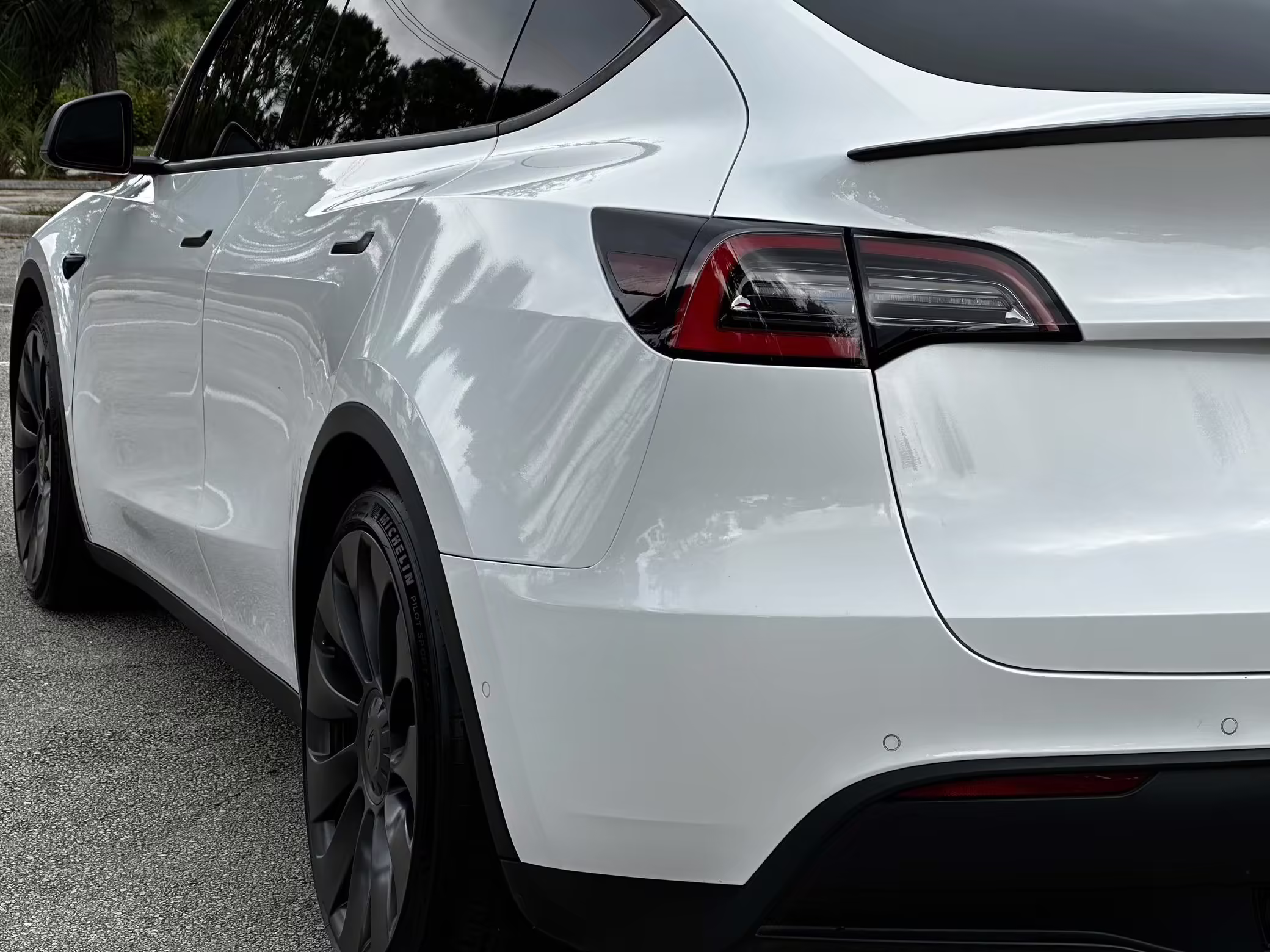 2021 Tesla Model Y Performance, finished in Pearl White with a black interior.