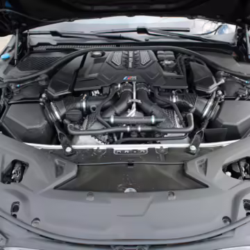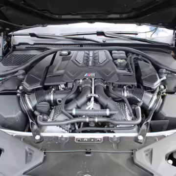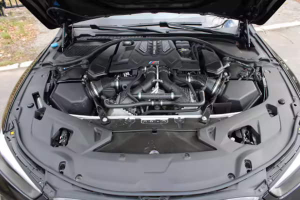 • Power comes from a 4.4-liter twin-turbocharged V8, rated at 617 horsepower and 553 lb-ft of torque. Output is sent to all four wheels via an 8-speed automatic transmission.
