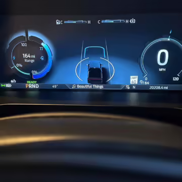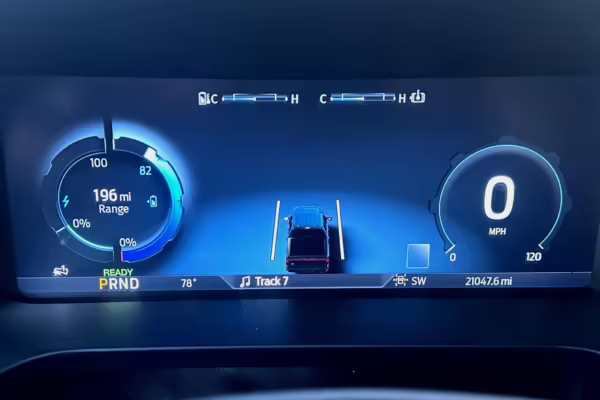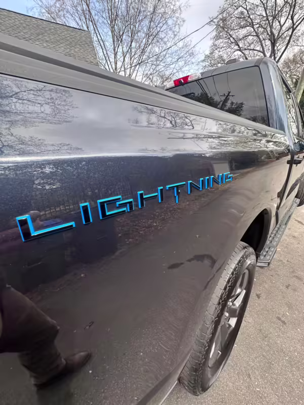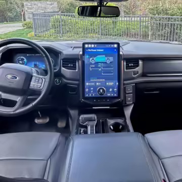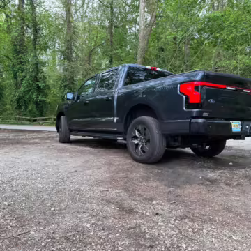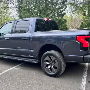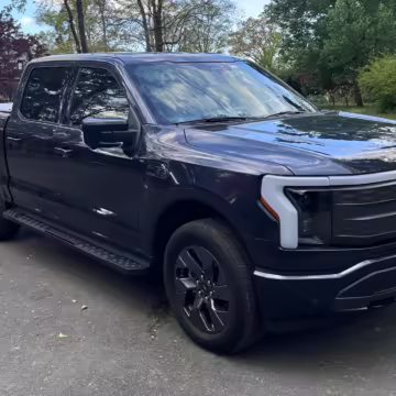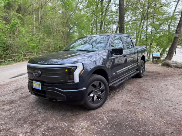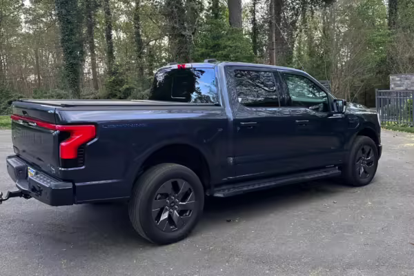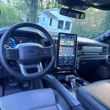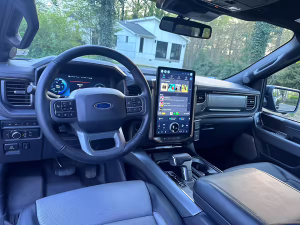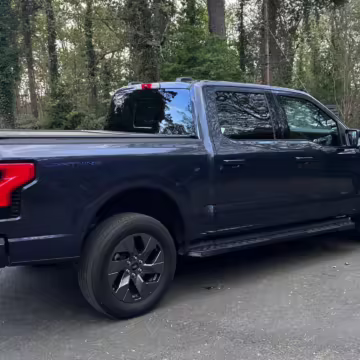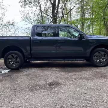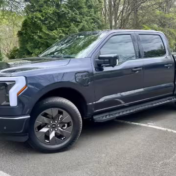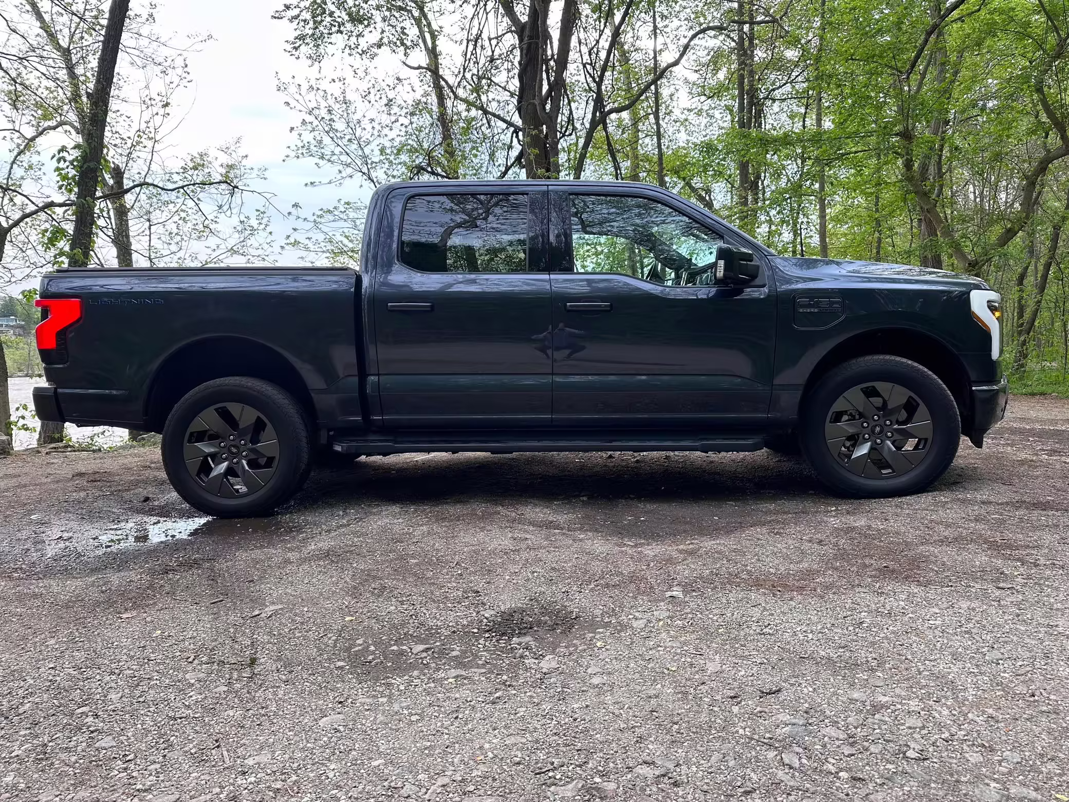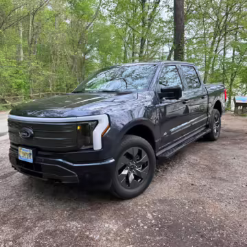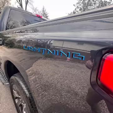 Power comes from a pair of electric motors (one per axle), which draw electricity from a 98-kilowatt-hour lithium-ion battery pack to zap all four wheels with 452 horsepower and 775 lb-ft of torque. The Lightning earned a maximum driving range of 230 miles from the EPA with the standard-range battery.
