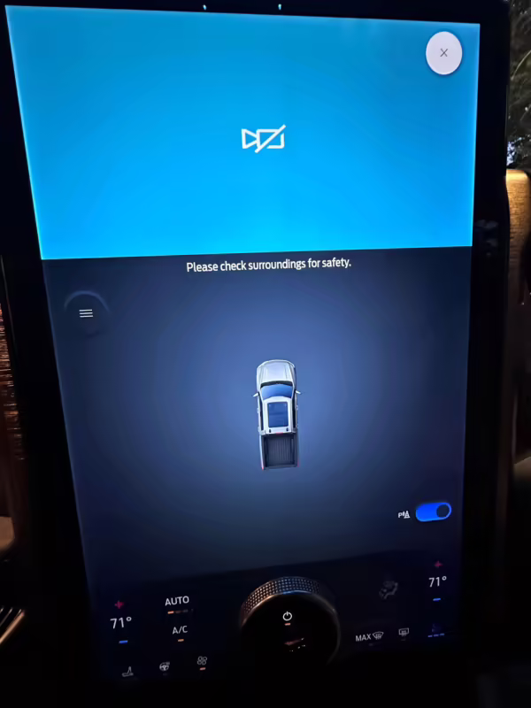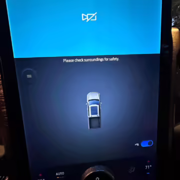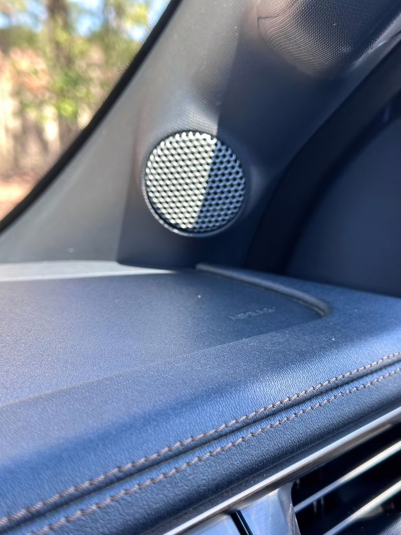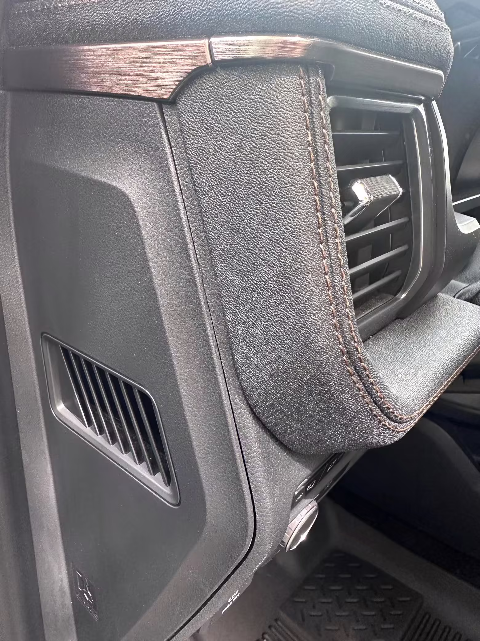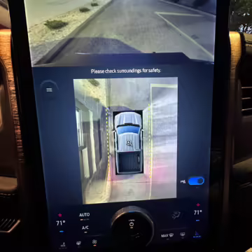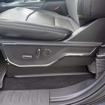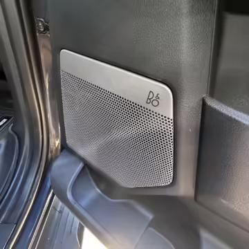 Factory equipment includes the Equipment Group 510A, 20-inch wheels, a trailer hitch, leather upholstery, heated, ventilated, and power-adjustable front seats, power-adjustable pedals, a 15.5-inch touchscreen with Apple/Android CarPlay compatibility, an 8-speaker Bang & Olufsen sound system, and a 360-degree camera.