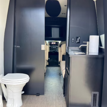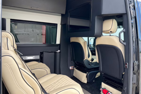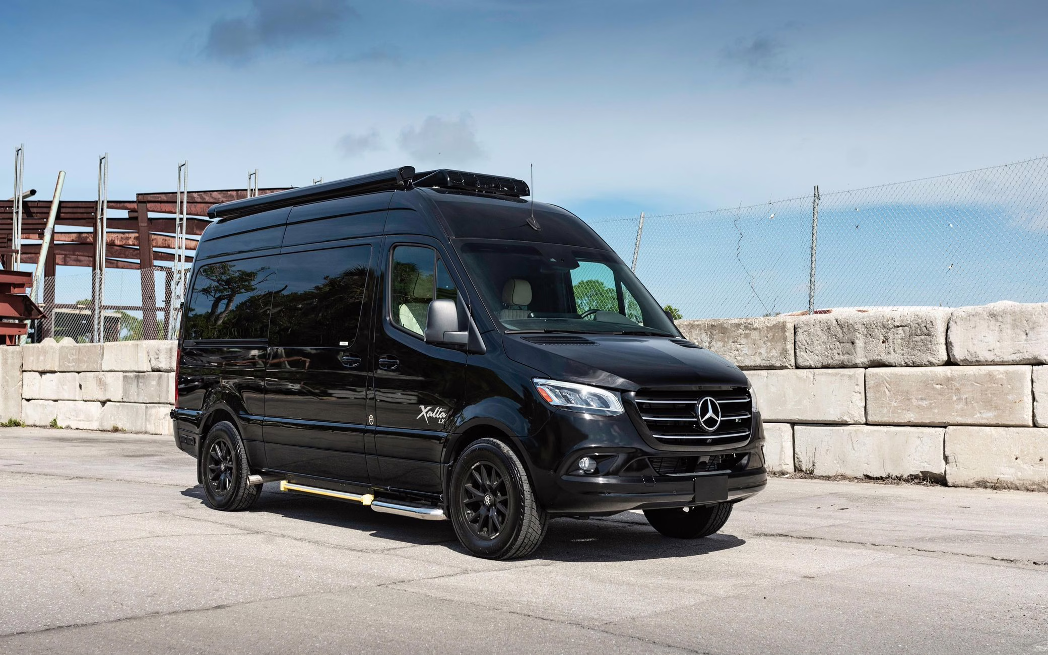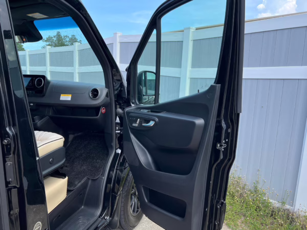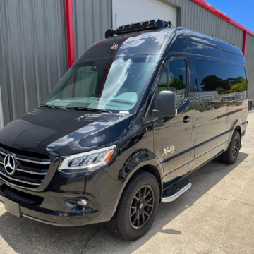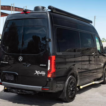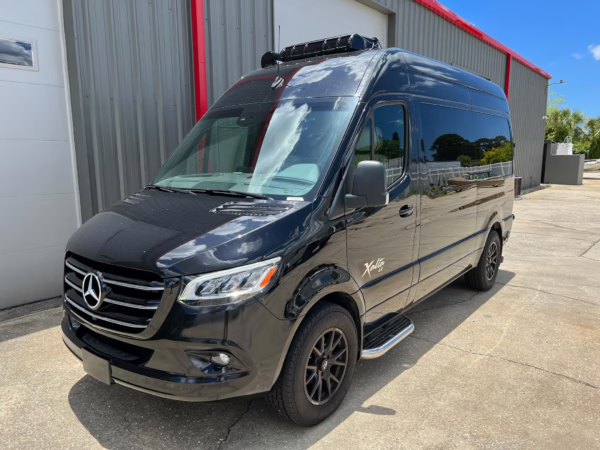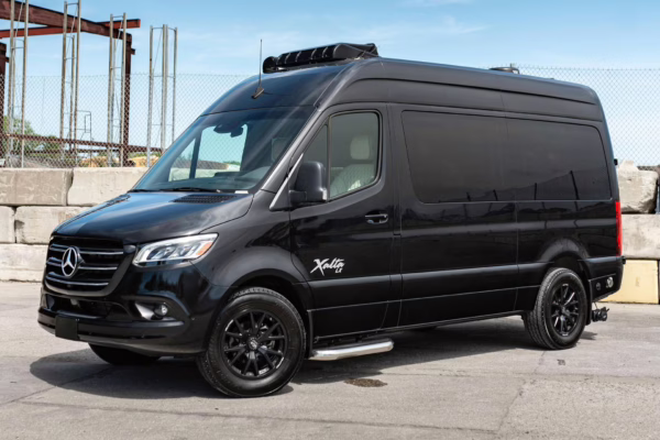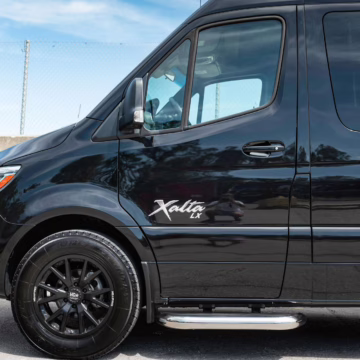 2022 Mercedes-Benz Sprinter 2500 Regency Xalta LX Tour, finished in black with a tan and black interior.