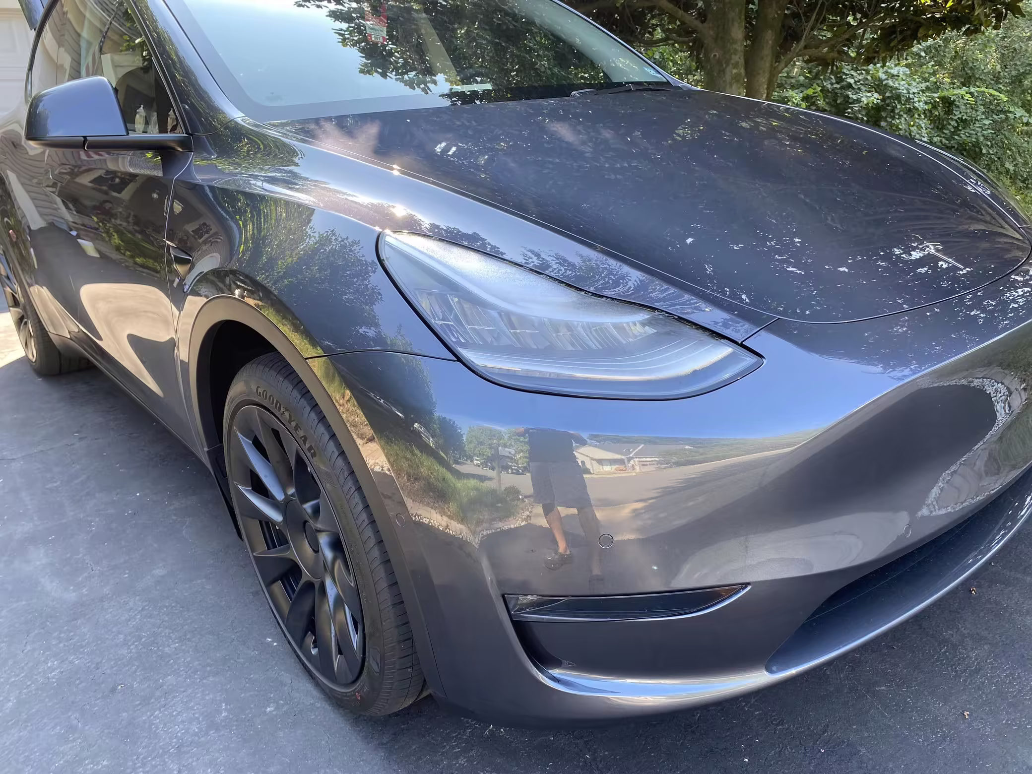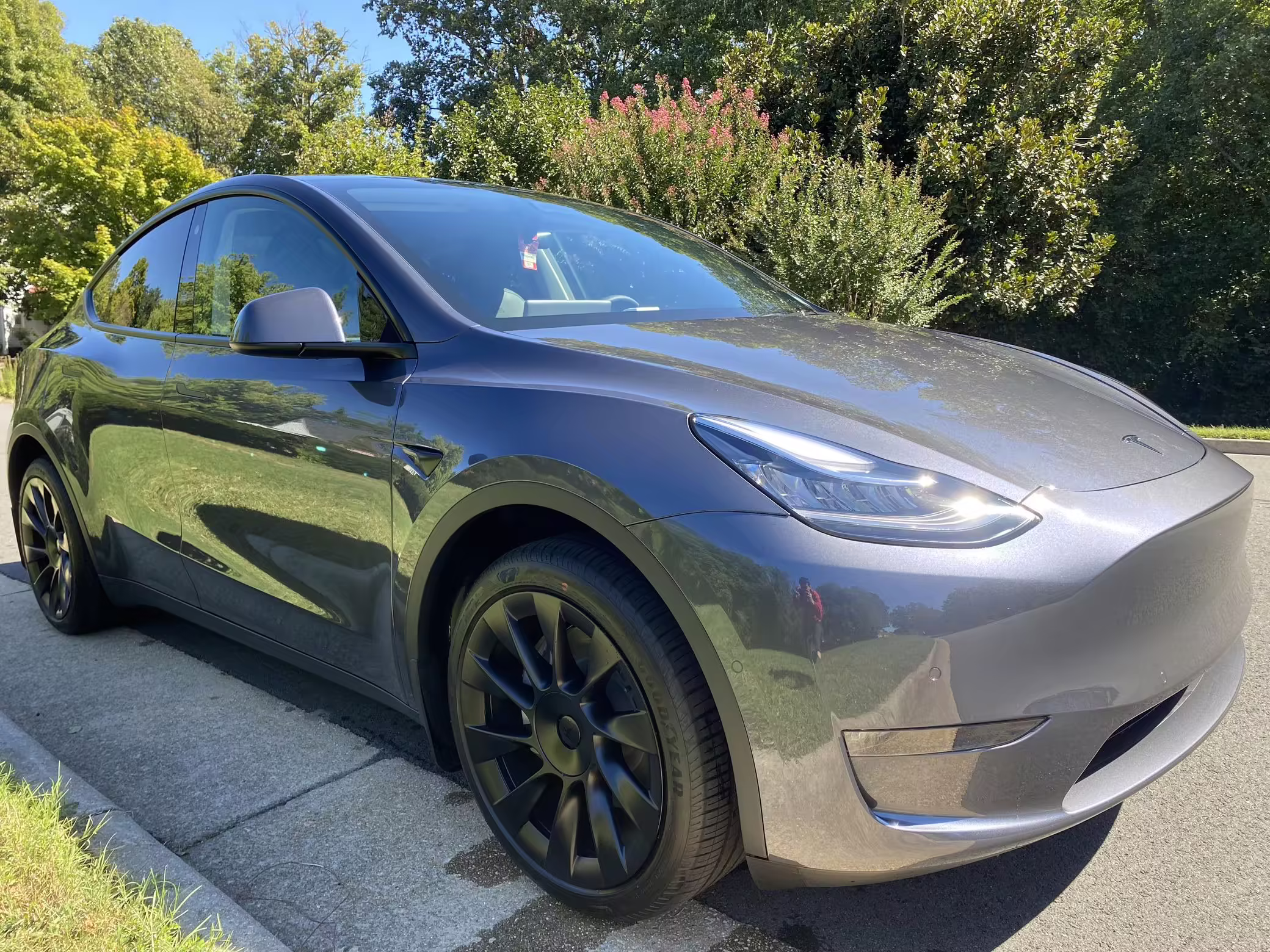 2022 Tesla Model Y Long Range AWD, finished in Midnight Silver Metallic with a black interior.