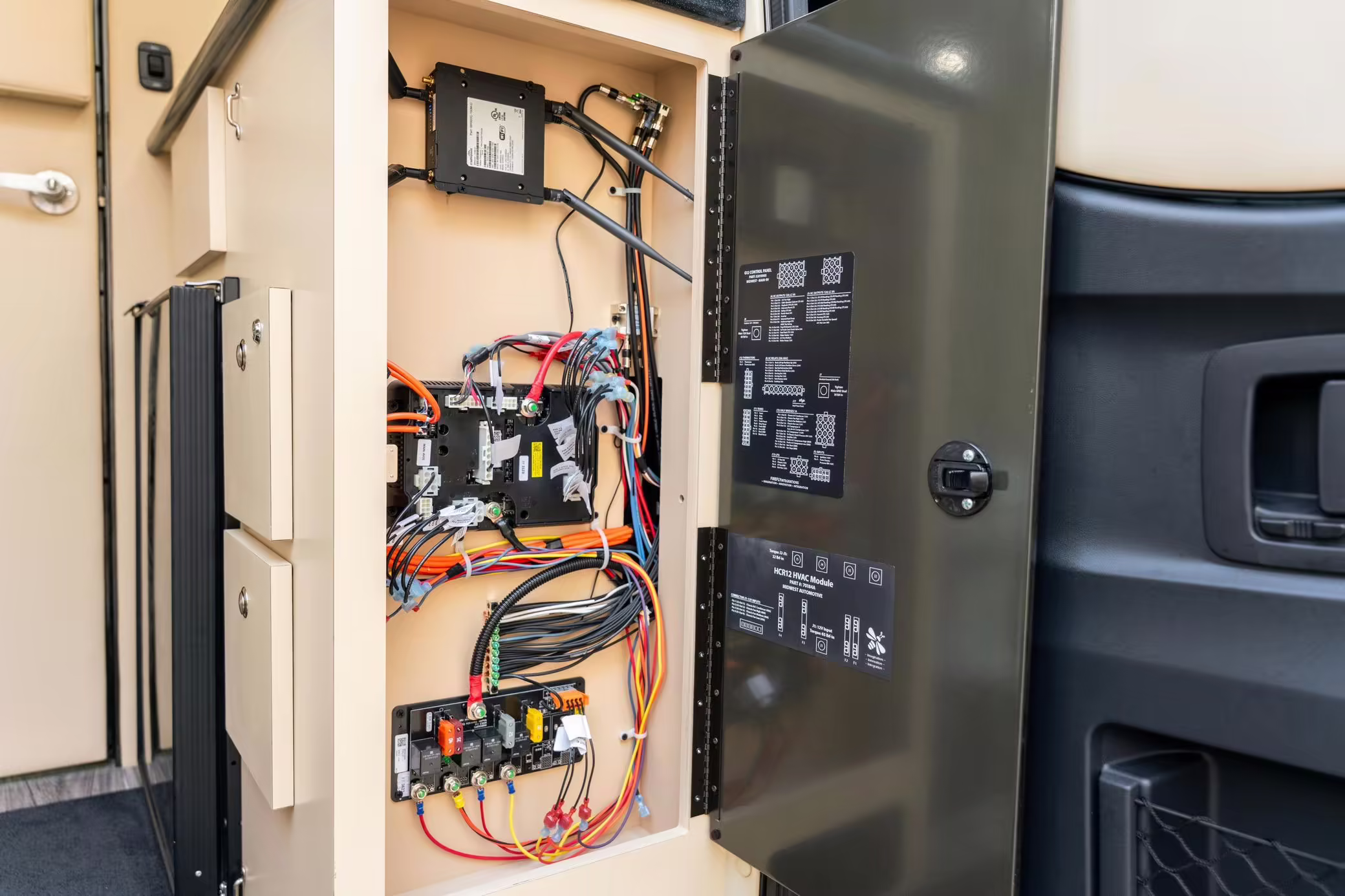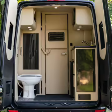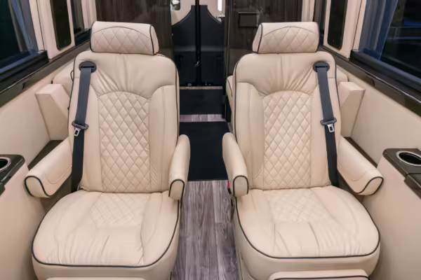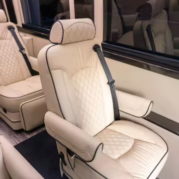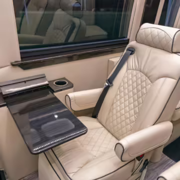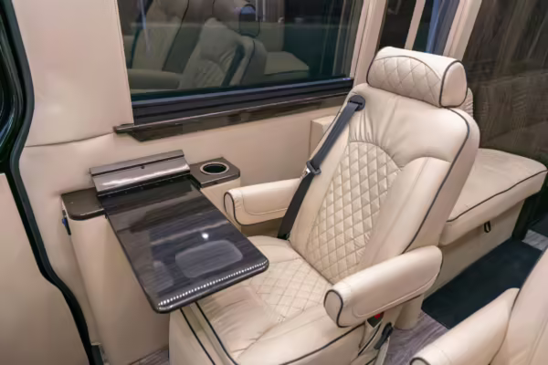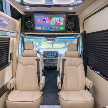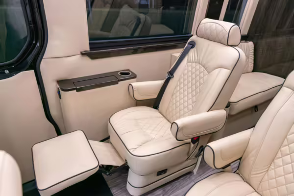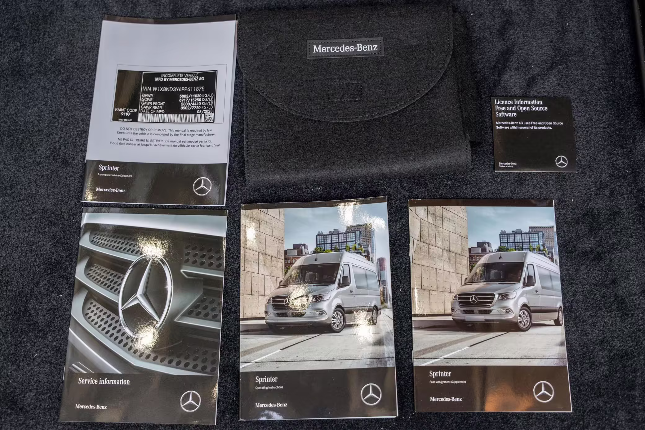 Built on a 2023 chassis, this Sprinter received a luxury van conversion by Ultimate Toys and was designed by Midwest Automotive Design. Notable modifications reported by the seller include adjustable captain’s chairs, a convertible sofa bed, two HDTVs, lap tables, a kitchen, Wi-Fi connectivity, smart controls, and a rear bathroom, among others detailed below.