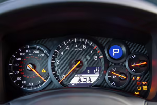 • This GT-R’s odometer displays about 50 miles.