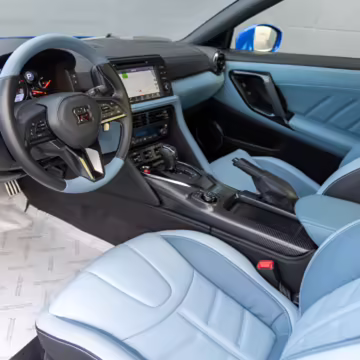 • Released to commemorate the final year of R35 sales on the American market, the Skyline Edition stood out with iconic Bayside Blue paint used on previous generations of the GT-R and equally striking blue leather that Nissan called Sora Blue. Production was limited to 100 units.